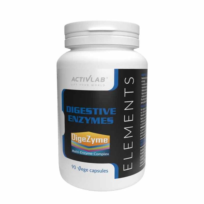 O produto da linha ELEMENTS , Digestive Enzymes, baseia-se no complexo enzimático digestivo de marca DigeZyme®, que não é de origem animal. Consiste em: