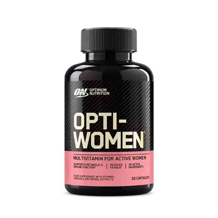 Opti-Women de Optimum Nutrition é um complemento especialmente concebido a pensar nas necessidades do sexo feminino. Ele fornece uma combinação de 30 ingredientes que contribuem para manter e reforçar o estado de saúde. Pensando para mulheres desportistas com um alto nível de atividade física e mental, ajuda a manter a vitalidade, bom desempenho e resultados ótimos..
